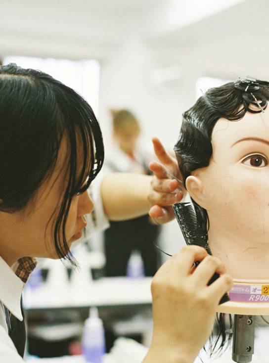 「ヘアカット」「パーマ」「ヘアカラー」「シャンプー」「アップスタイル」等の技術を重点的に修得していきます。1年次からカットやヘアカラーの授業を充実させることで、デザインの幅を広げ、お客様のニーズに応えられる能力を養います。